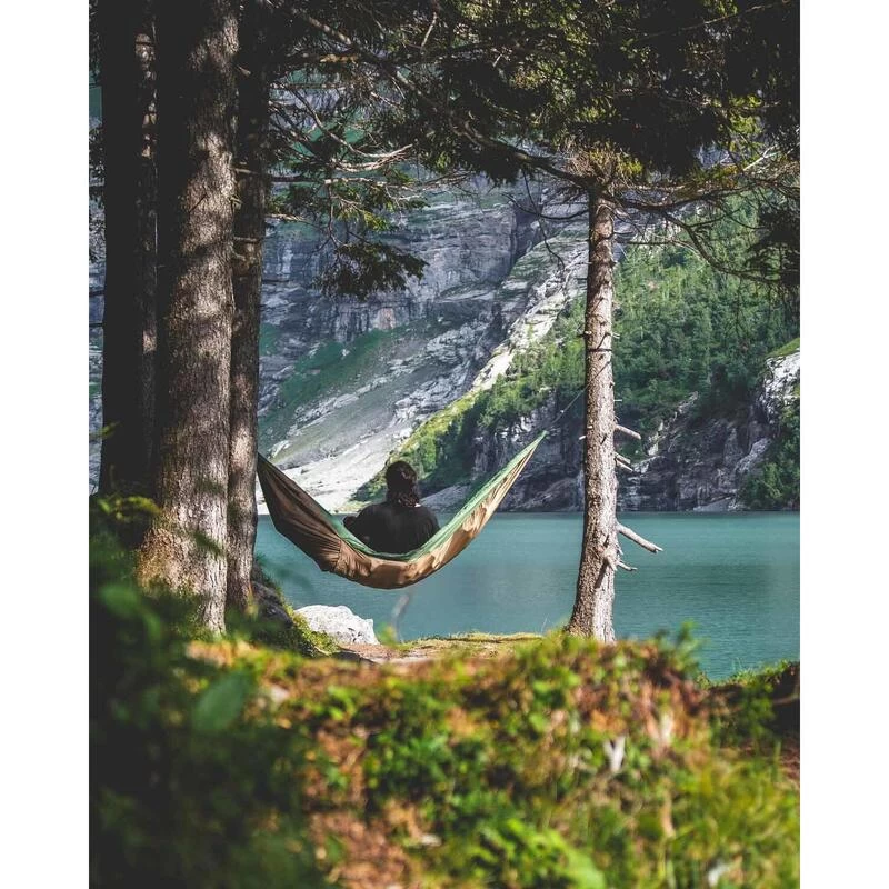 Hammock en nylon ripstop léger avec moustiquaire intégrée étanche. Équipé d’une double couche pour utiliser avec un matelas de couchage.