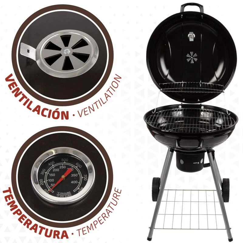 Aktive Barbecue barbecue à charbon portable rond de couleur noire