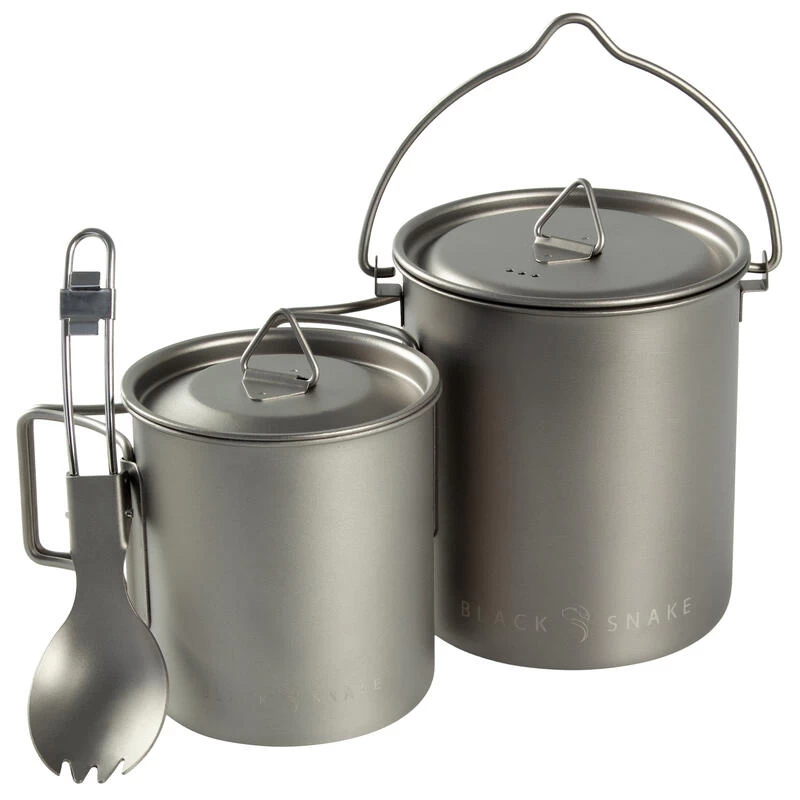 Batterie De Cuisine De Camping Set | Casseroles + Fourchette/Cuillère | Titane