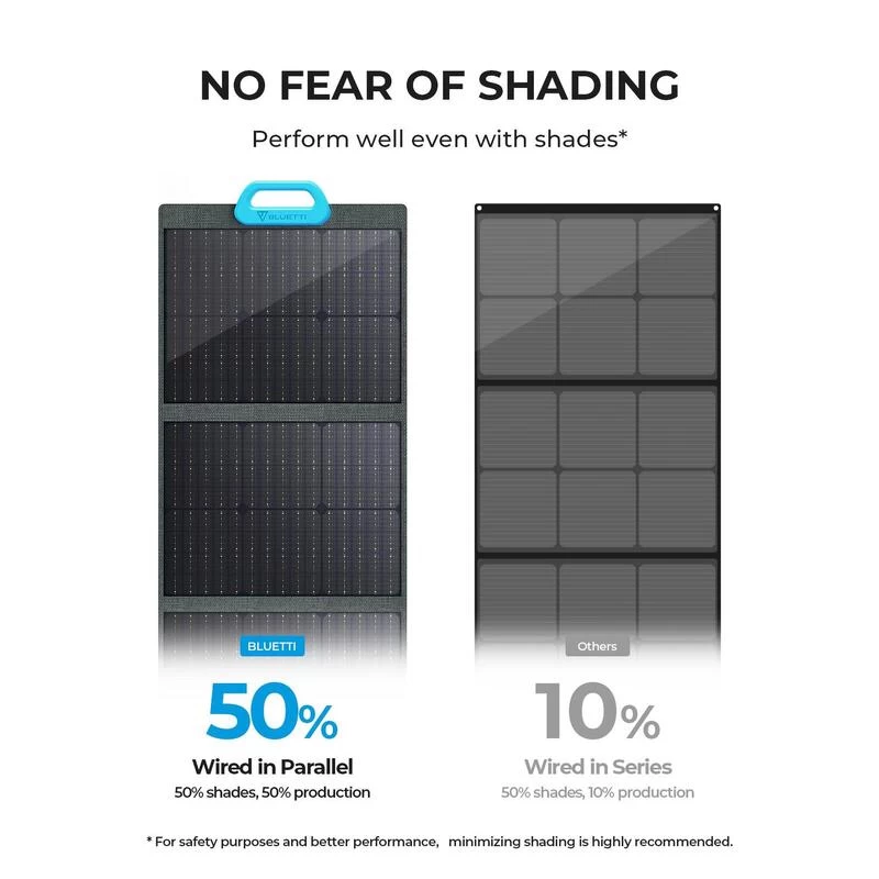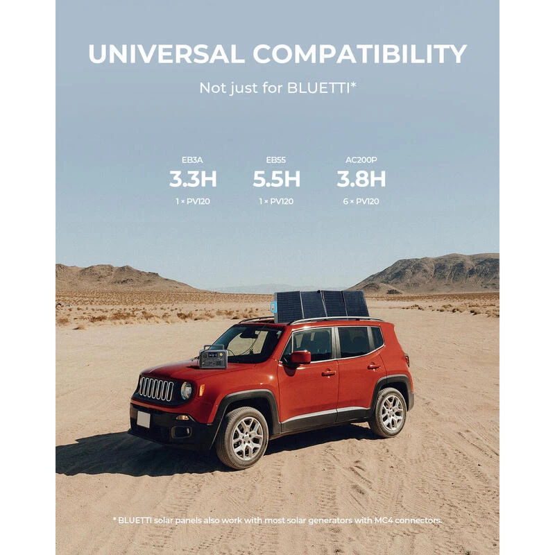 BLUETTI Panneau Solaire PV120, Panneau Solaire 120W pour Centrales Électriques EB3A/EB55/EB70/AC200P/AC200MAX/AC300, Support Réglable, Pliable et Portable pour Camping, et les Situations d’Urgence