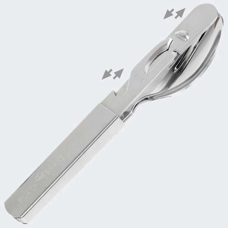 · couverts: fourchette, couteau, cuillère, ouvre-bouteille & ouvre-boîte