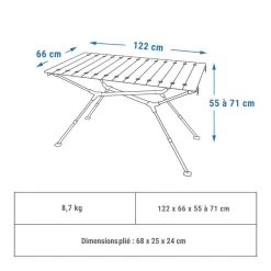 Quechua TABLE DE CAMPING COMPACTE 4/6 PERSONNES – PLATEAU BOIS – POCHE DE RANGEMENT