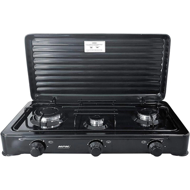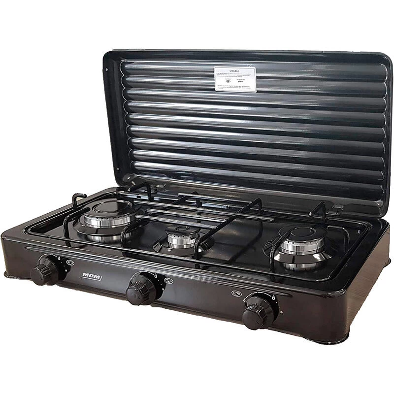 MPM Cuisinière à Gaz Portable Pour Le Camping Avec 3 Feux Couvercle Smile