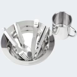Set De Couverts De Camping, Assiette Creuse & Tasse Thermique Inox | 1 Personne