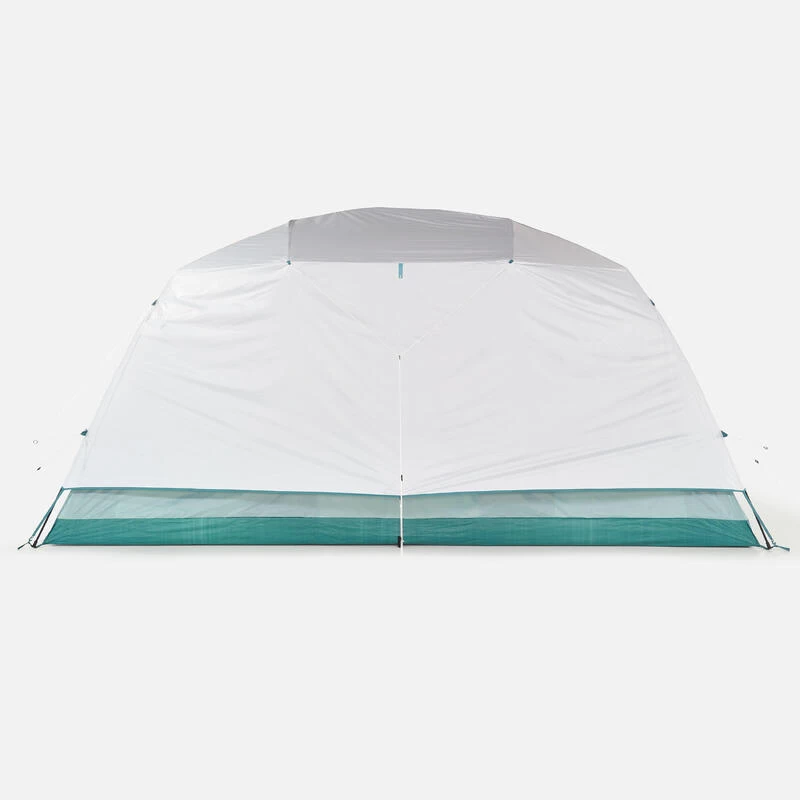 Nous testons nos tentes pour valider leur imperméabilité. Le premier test se fait en laboratoire pendant 3 h sous 200 litres d’eau par heure et par m², l’équivalent d’une pluie tropicale de 200 mm par heure. Le second test se fait sur le terrain en conditions réelles par nos équipes. Cette tente est équipée d’un double-toit en polyester enduit polyuréthane de 2 000 mm. Elle dispose également de coutures étanchées via des bandes thermocollées et d’un tapis de sol polyéthylène 140 g/m².