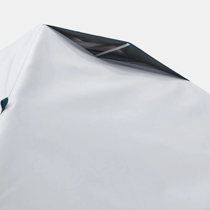 Pour permettre à l’air de circuler et d’être renouvelé entre la chambre et le double toit et limiter au mieux le phénomène naturel de condensation, la tente dispose de 1 aération sur le haut, 2 ventilations mécaniques latérales et 1 porte intérieure avec mesh sur la partie haute.