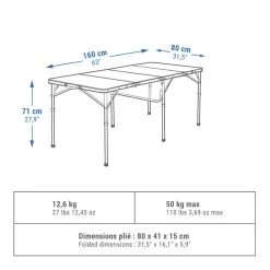 AKTIVE – Table Pliante . Table Basse Blanche En Aluminium – 40x60x40 Cm