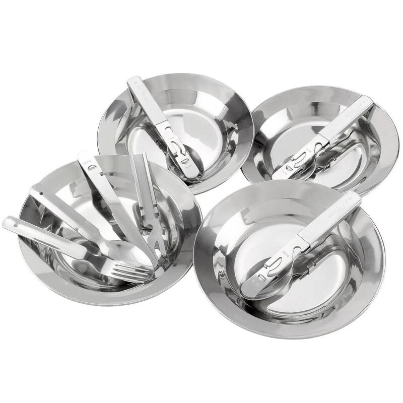 · 4 pièces de couverts par set: fourchette, couteau, cuillère, ouvre-bouteille & ouvre-boîte
