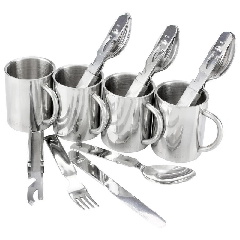 Set De Couverts De Camping & Tasse Thermique à Mousqueton | 4 Personnes