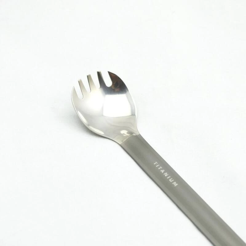 Cette cuillère-fourchette en titane léger de Toaks avec une longue poignée. Sa finition polie miroir offre un maximum de confort pour manger. Léger, robuste et facile à entretenir. Parfait pour toutes
